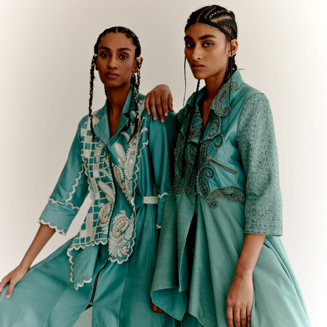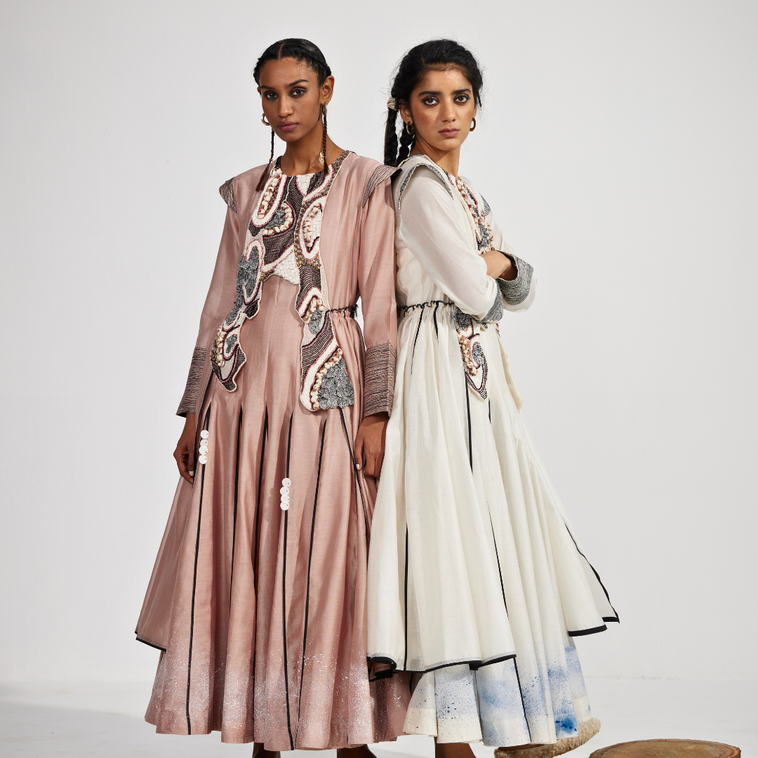 We believe that clothing is an expression of one’s personality, and so like people the garments should be unique too. Unique textures, eclectic mix of materials, printing techniques, ornamentation, and unrestrained free-flowing silhouettes define our clothing. We feel we are crafting art, we just happen to use fashion garments as our medium. Being ethical and eco-conscious naturally branched out of our belief and process, we don’t know if it could be any other way.